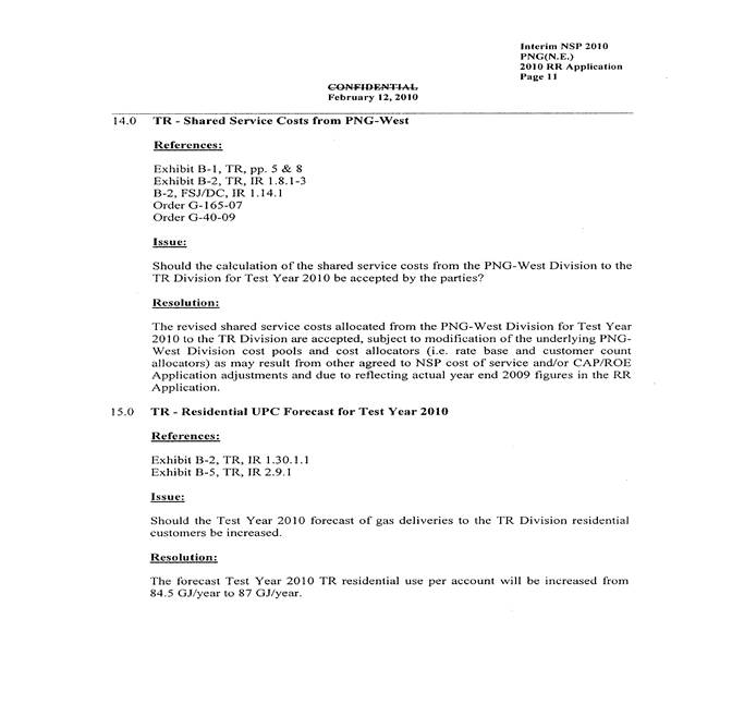 2. PNG (N.E.)’s 2010 delivery rates will remain as interim until PNG (N.E.)’s CAP/ROE proceeding is completed and PNG-West’s Revenue Requirements negotiations have resumed to establish permanent 2010 delivery rates for PNG-West and a further PNG (N.E.) Negotiated Settlement Agreement is provided for Commission approval.